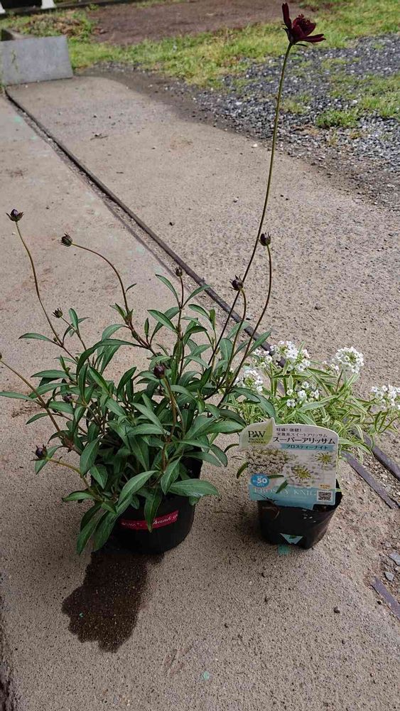 🌺PWブランドのチョコレートコスモスとスーパーアリッサム、チョコレートコスモスは出荷のはしりなのか少々高めです。プランター植え用にね。