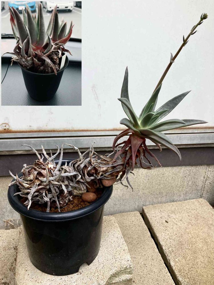 初めはこじんまりした2頭の個体だったけど後に3頭になり、枯れて今は頭ひとつ