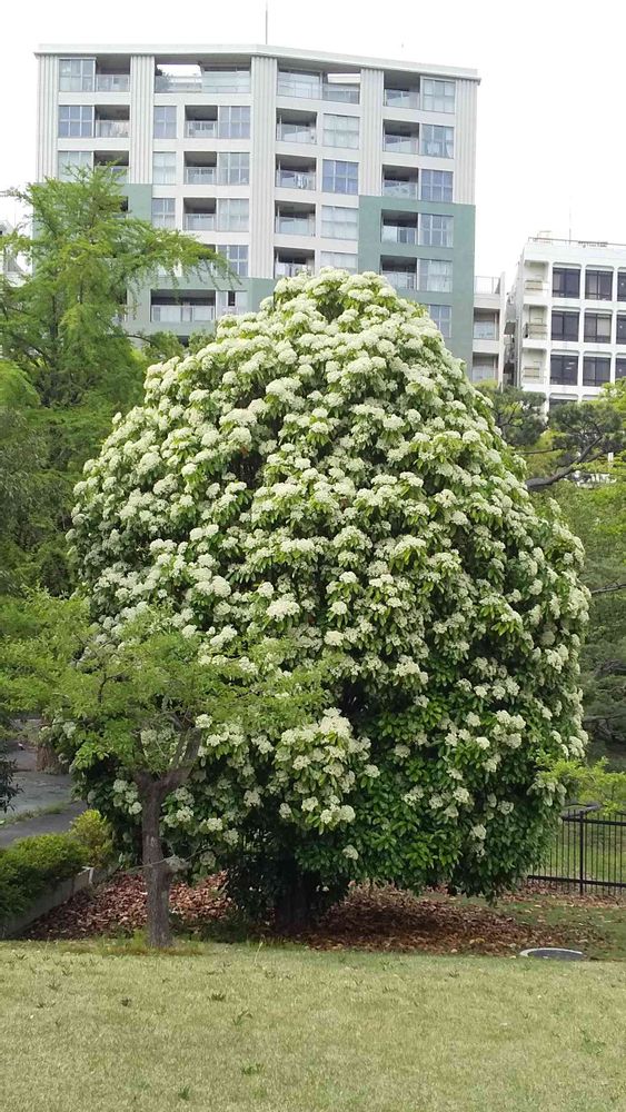 大きな木に白い小さな花がいっぱい咲いて目を奪われます🌲✨✨😳