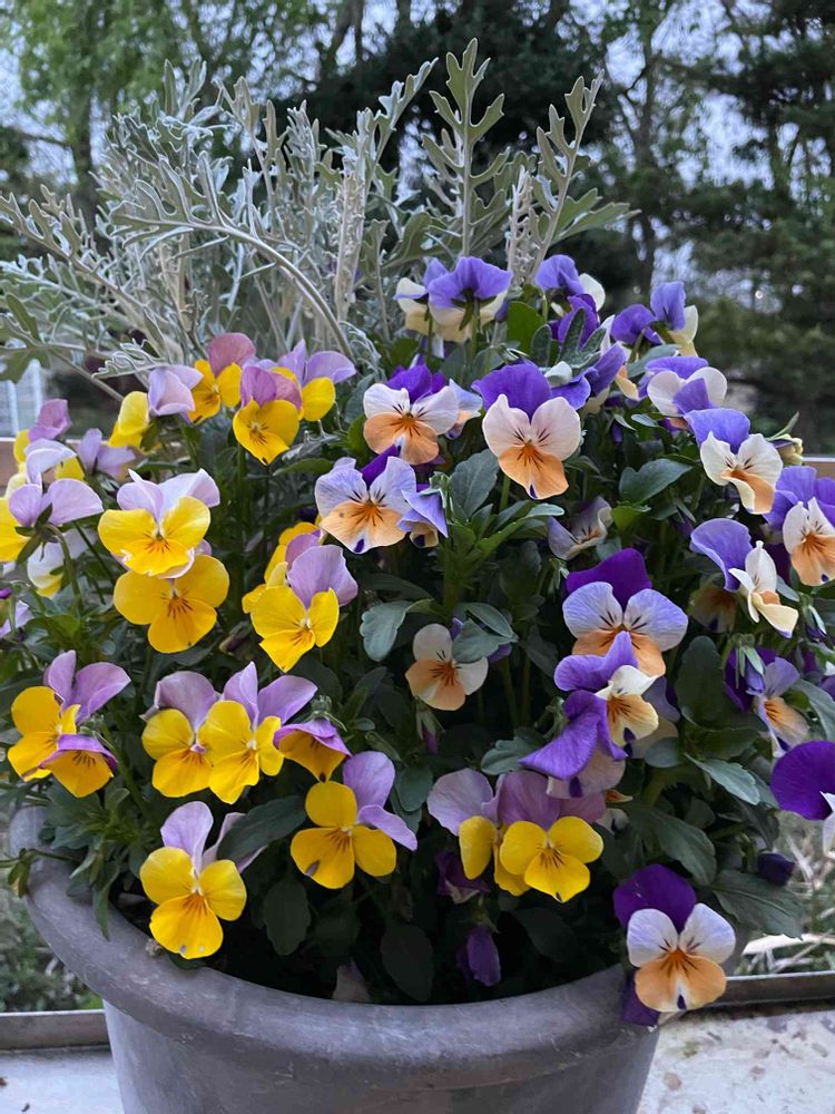 可愛いビオラに、シロタエギクが見守る様に仲良く咲いていますね🤗🎶