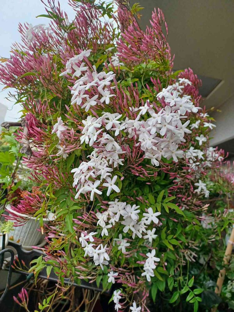 リビング前の羽衣ジャスミンも咲きだしました💟