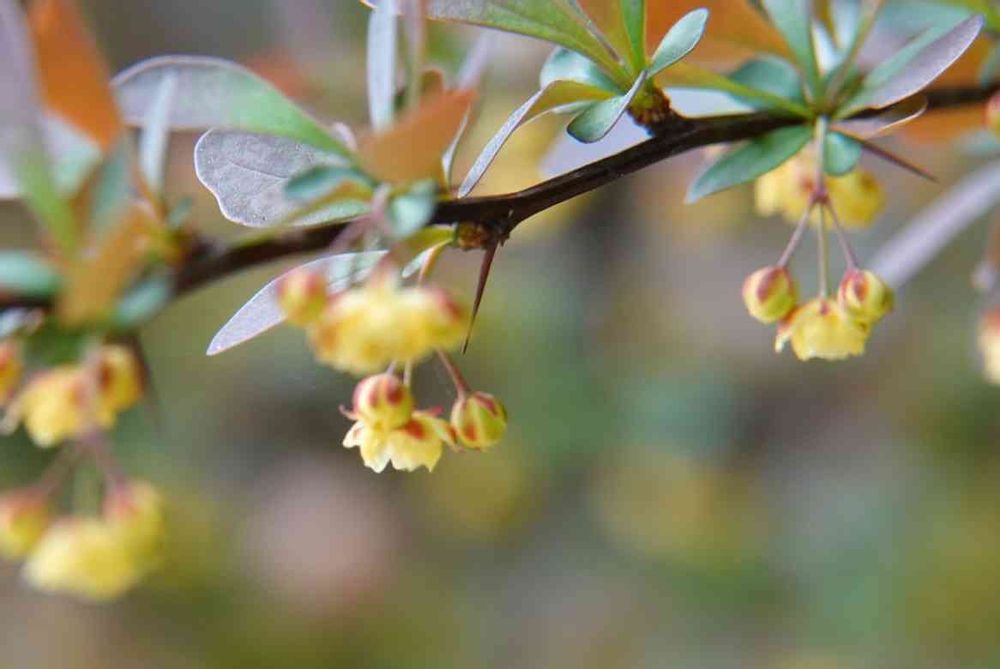 野鳥公園で低木ながら赤い実と棘が印象的でしたが花を見たのは今年初めてでした。胴葉のメギはつぼみにも赤が残り可愛いです