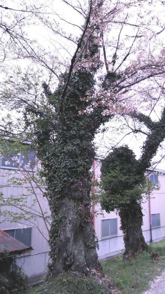 桜の古木に登るツタです