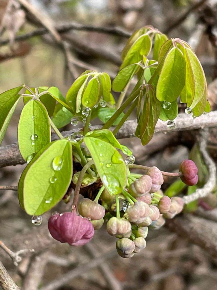 雨上がり、雨粒を纏ったアケビが綺麗だったのでパチリ📸