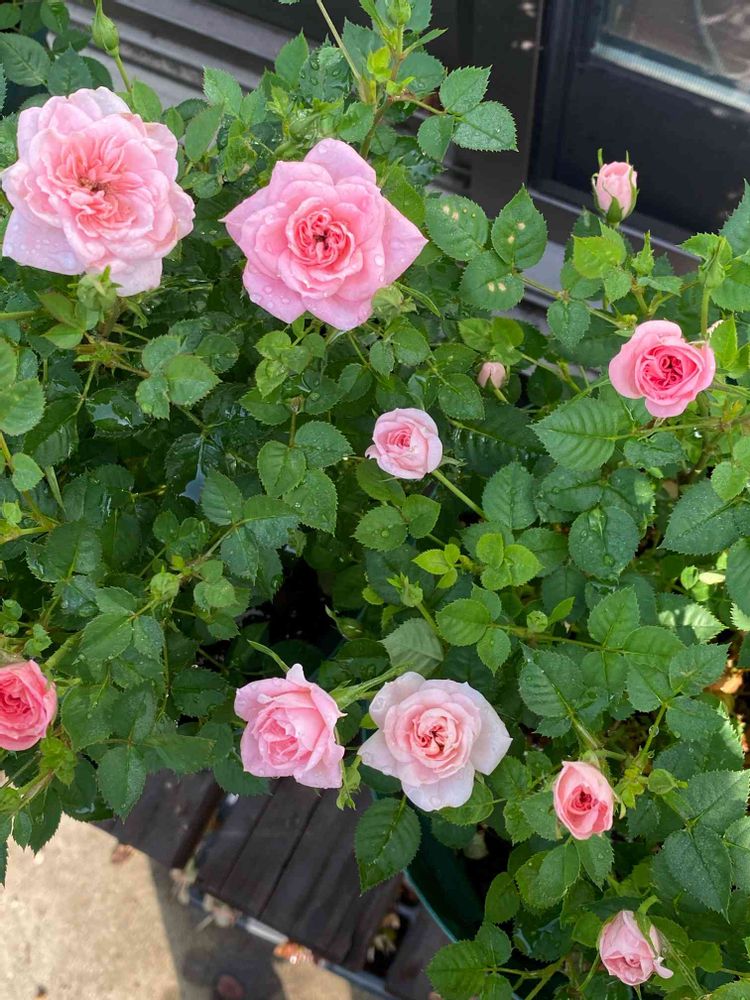 今朝の雨が上がりのピーチ姫、どんどん咲いてます🌸キラキラしてる〜(*´∀`*)