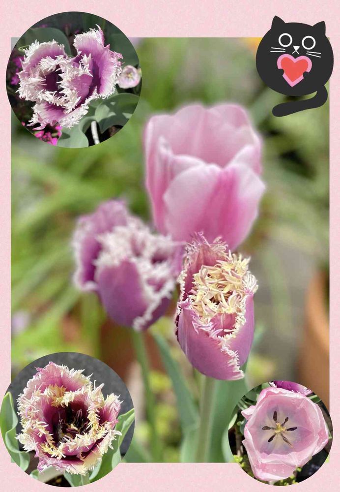 フリフリチューリップさんと黒猫ちゃんのコラボ可愛いですにゃ〜🌷😻😍