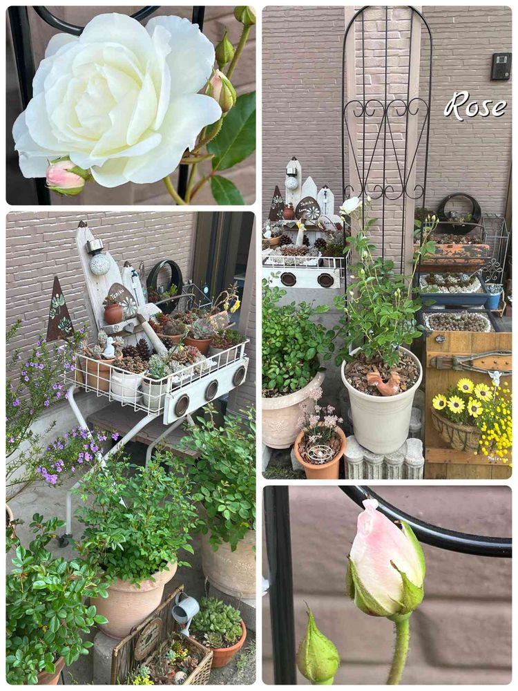 多肉を頭に植えたテラコッタドールにはお退きいただき薔薇コーナーにしたよ😁