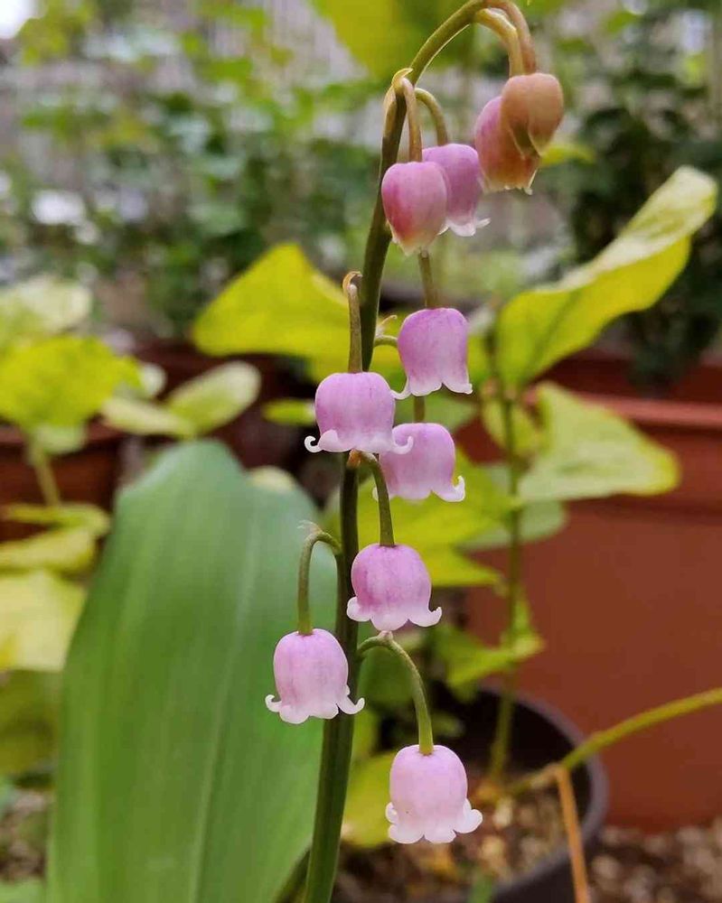 昨年、こぼれ種の野バラを土ごと鉢へ移して育てようとしたら、近くに地植えしているピンクスズランも付いてきていました🤭