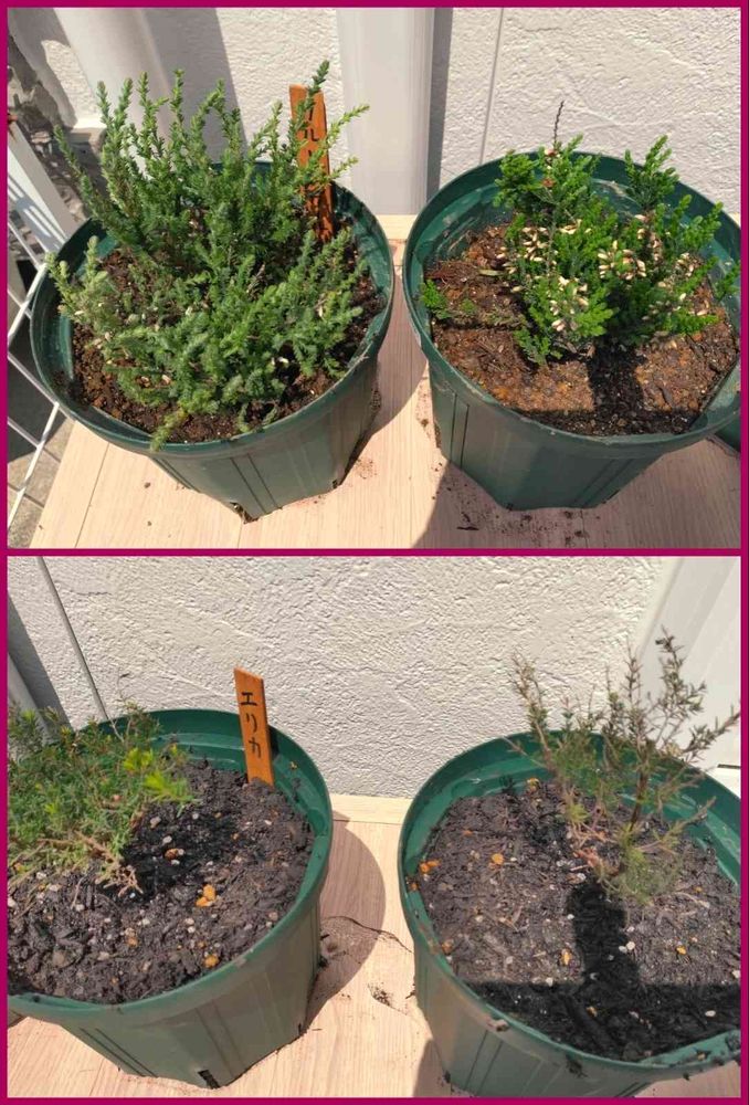 こんにちは。冬にがんばってくださいました方たちを植え替えいたしました。カルーナガーデンガールズさんと確かジャノメエリカさんの仲間です。ちょっと弱っていたので、スリット鉢にしました。また次のシーズンにむけて養成していきます。