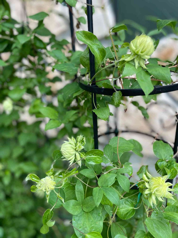 去年鉢植えにしたクレマチスダッチェスオブエジンバラの蕾が沢山✨✨昨年も少し咲いてくれて、花びらの数がタグと違って少な目だったけど、今回は蕾が明らかに違う‼︎八重咲きに期待💕