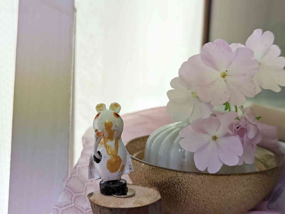 何だか、サクラソウのとなりに ほっくりを置いてたら