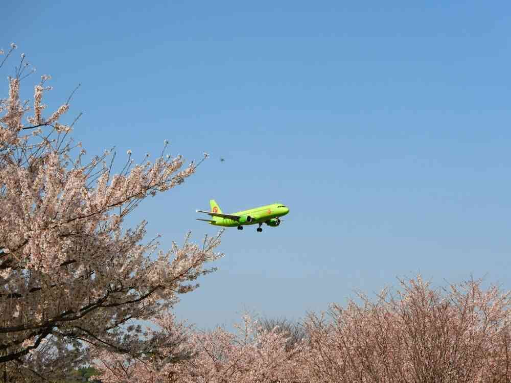 ほんとはさくらが映えそうなANAなど白い飛行機に合わせて📷撮りたかったのに、唯一ピントがあったのが…この黄緑色の飛行機…んーあなた✈どこの国のやつ?
