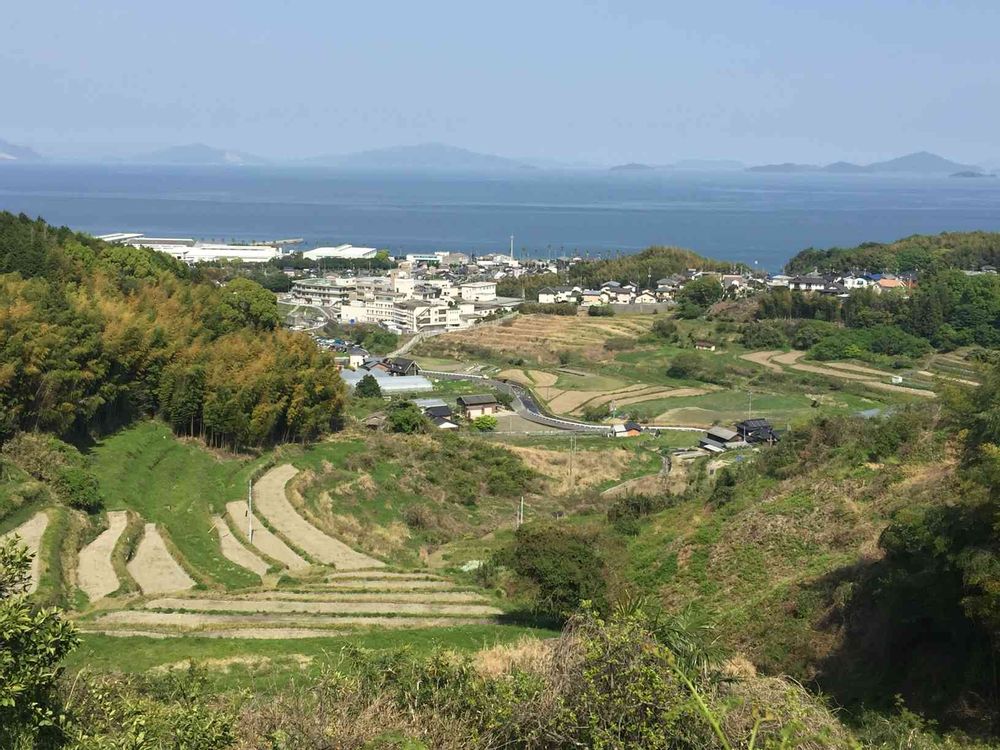 棚田と町並みと瀬戸内海。