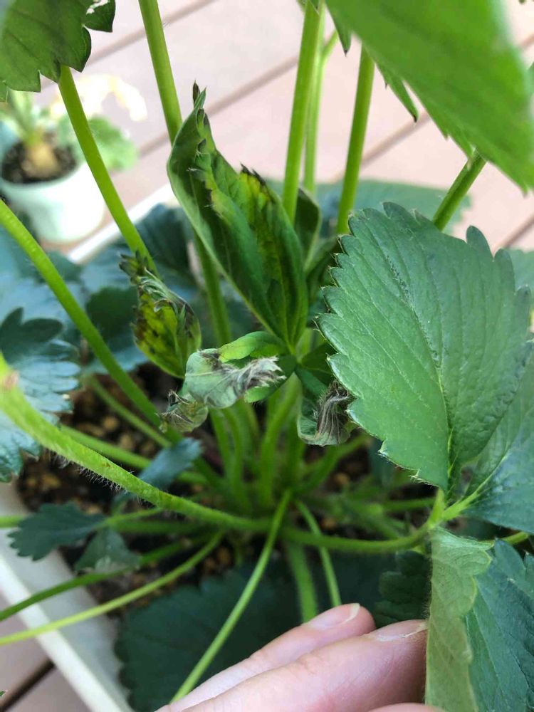 いちごの新芽が出てきたと思っていたらすでに葉先が黒く葉っぱも萎れていました💦 これはなんの病気でしょうか?