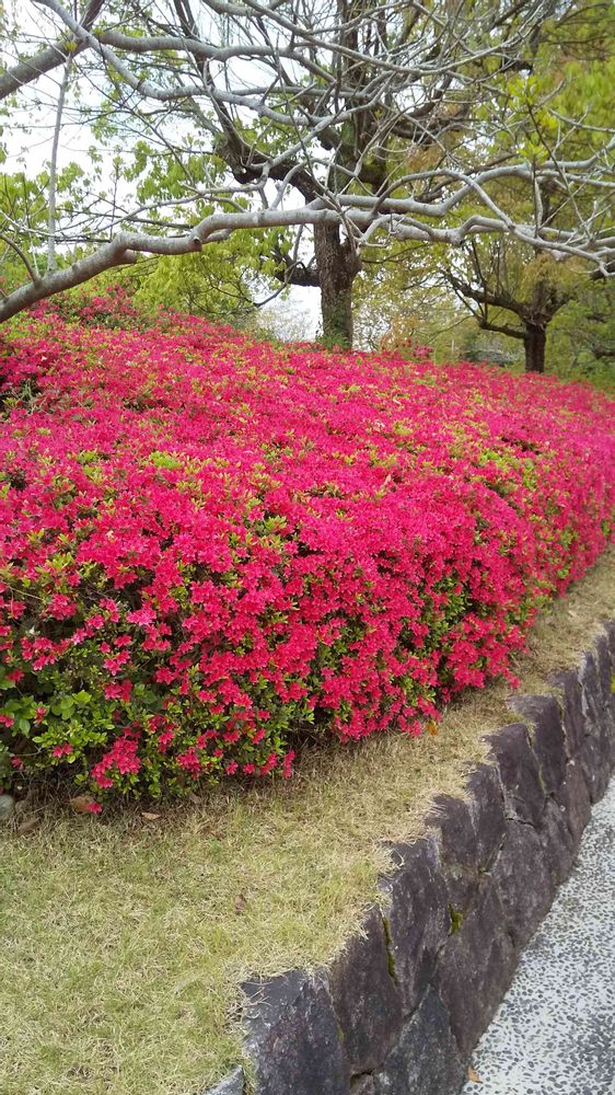 馬見丘陵公園にて、真っ赤な「ミヤマキリシマ」が咲いていました。🌺🌿🤗😊😄🌞✌️