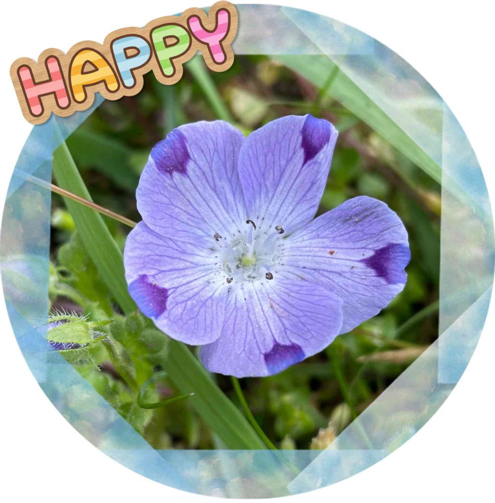 ネモフィラ マキュラータを野っ原で見つけました〜♬種が飛んでたのね〜😅それにしても〜このお花はもう少し白かったような〜🤔職場にて
