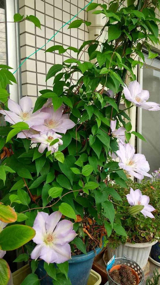クレマチス、大分咲き出しました😁🌸🌸嬉しいです❤️💕やはりピンクでなく、薄紫でした。😁🌸