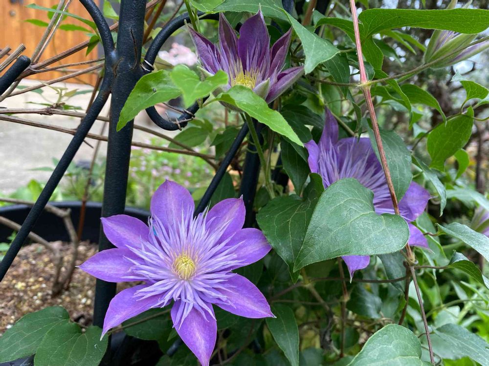 この子はあまりツルが伸びずに下の方で咲くことが多いので、他のクレマチスの足元が似合うみたい。