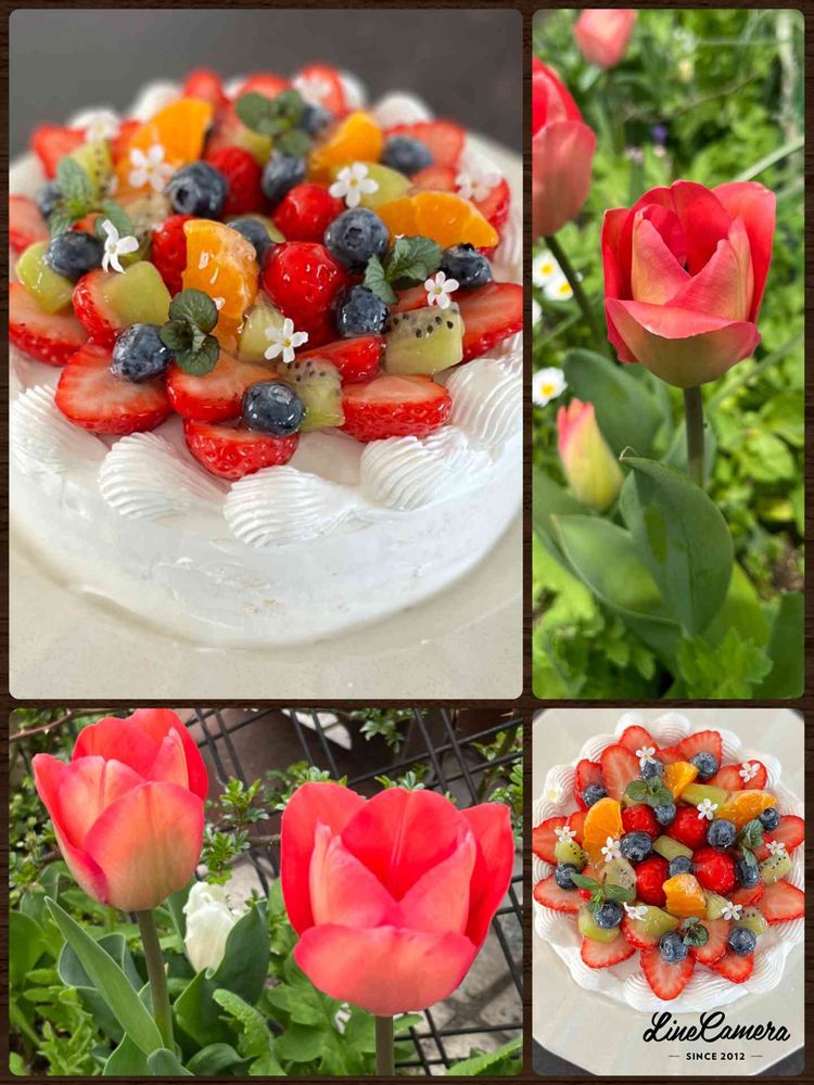 チューリップは綺麗だけどお腹が膨れないからやっぱり豪華なフルーツケーキの方がいいですね💓💕🥰