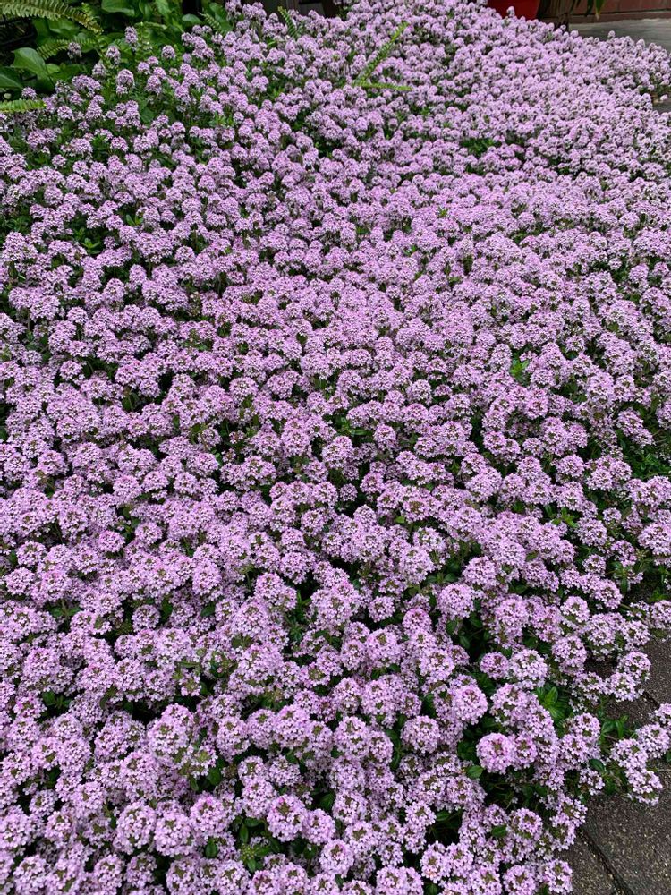 ウォーキングの帰り道、タイムが満開のお庭がありました。