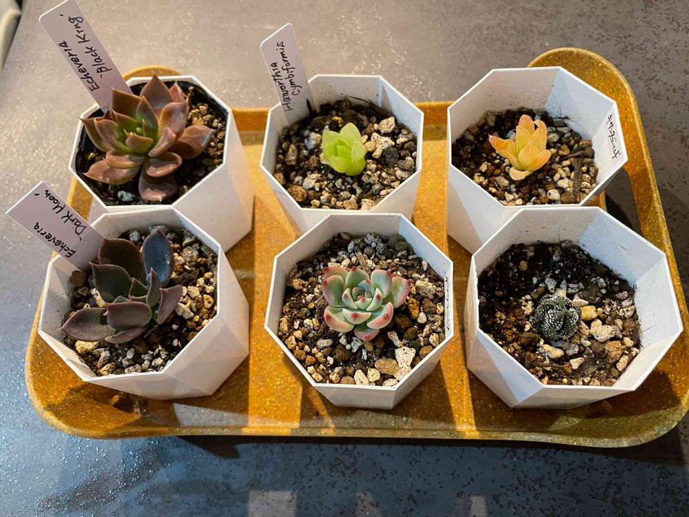 わかったぁ!これホームセンターで見たことある❣️確かに底が浅め。増やしていく用の子株によさげ〜。今あるハオさんたち、みんな3号ポットが窮屈そうだから、少しサイズが小さいかなぁ💧