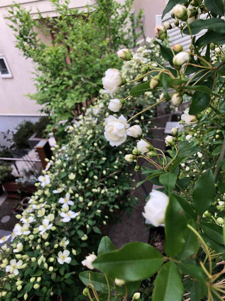 下はクレマチスモンタナグランディフローラも咲き出し、良い感じのコラボpic撮れました💕💕💕