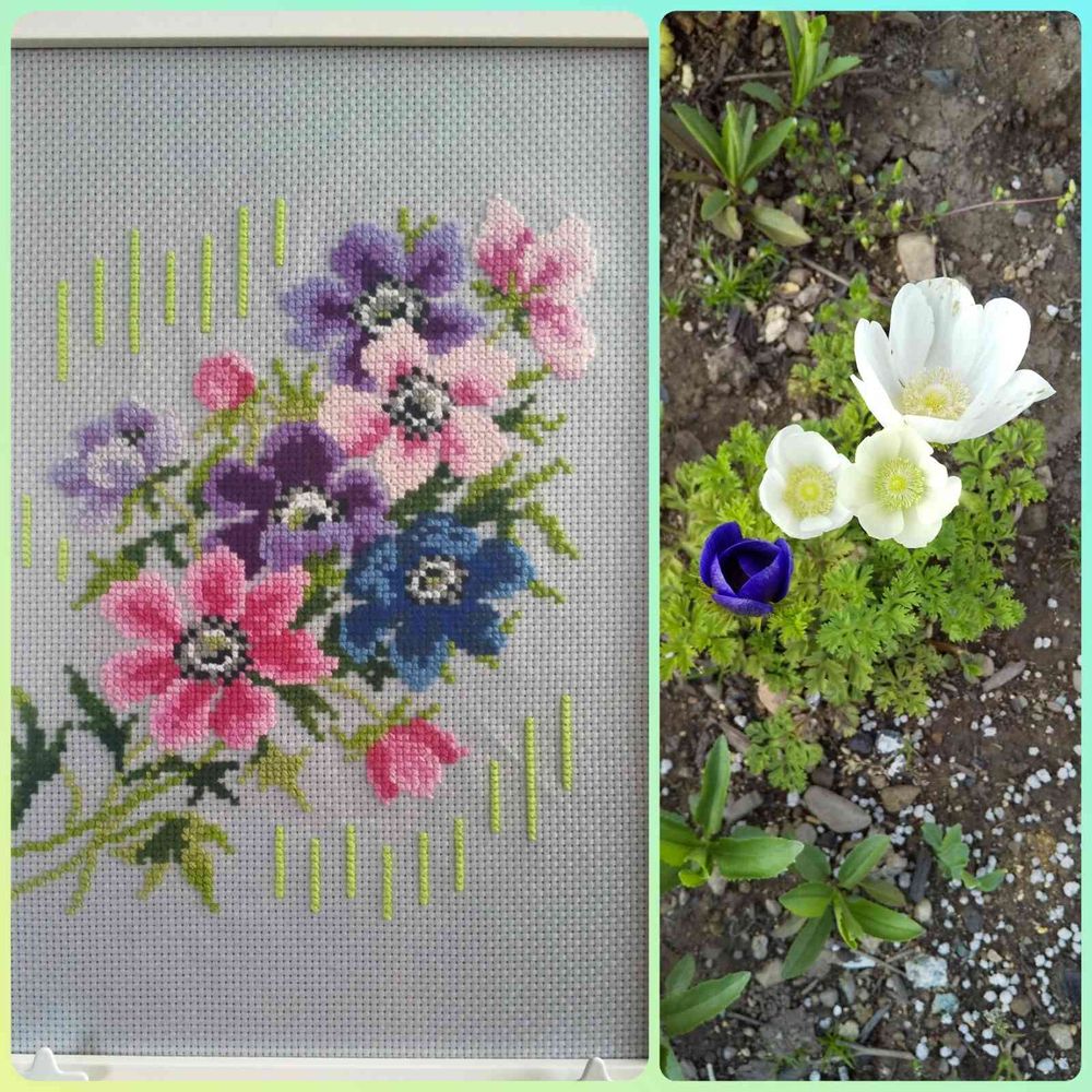 私も庭仕事が楽しくなり、刺繍も休みながらだけど、アネモネ❤️を刺してみました💖