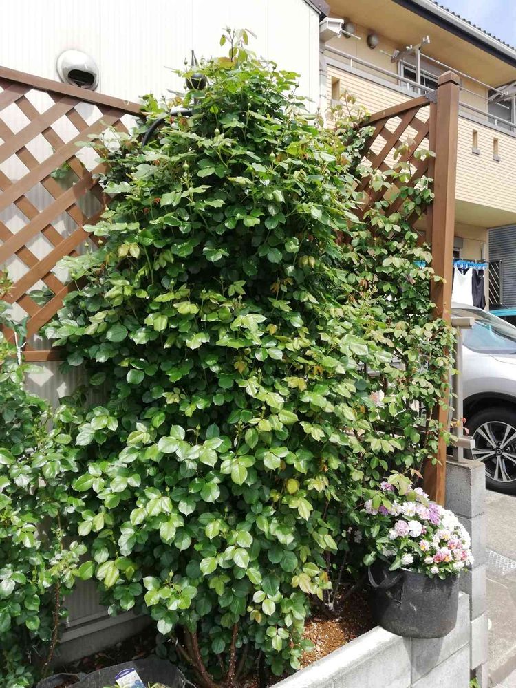 クリスティアーナ。無農薬ですが、モリモリ育っています。大量のつぼみを控えています