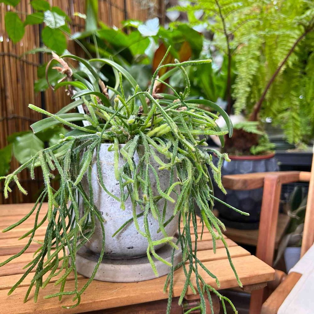 ジメジメ系の着生ランとリプサリスを寄せ植えしました