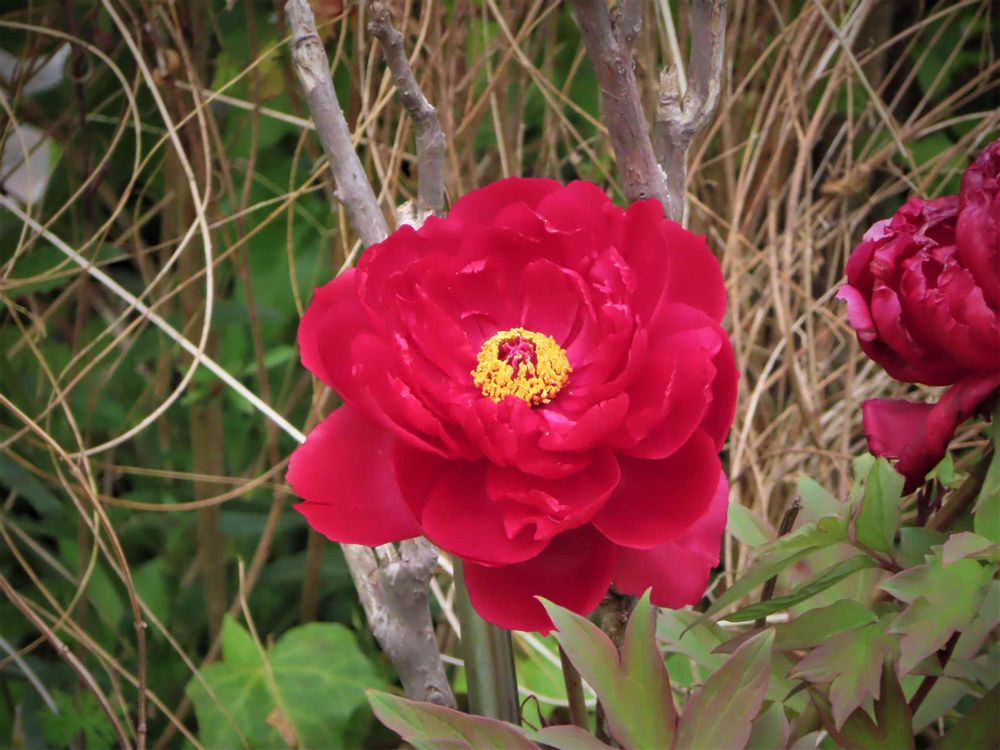 綺麗に咲いた真っ赤な「ボタン(牡丹)」に出会えました。 パチリ