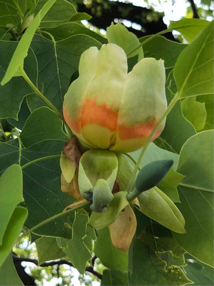 ユリノキ 直径1mの巨木が3本、初めて遭遇するチューリップの様な花の大きさは花径5センチ位か🤗🎶