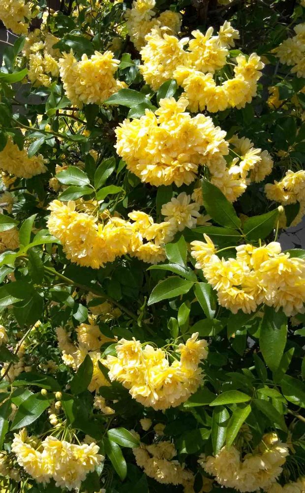 通りすがりに見かけました、黄色いモッコウバラ☺️