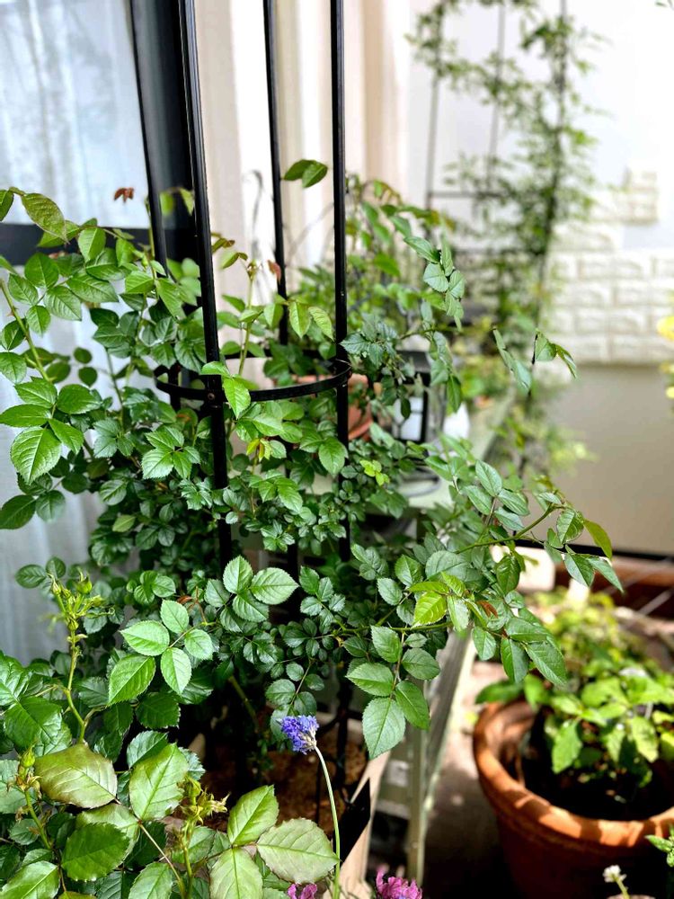 あまり背丈伸びない種類はオベリスク仕立てにしてみてます💕