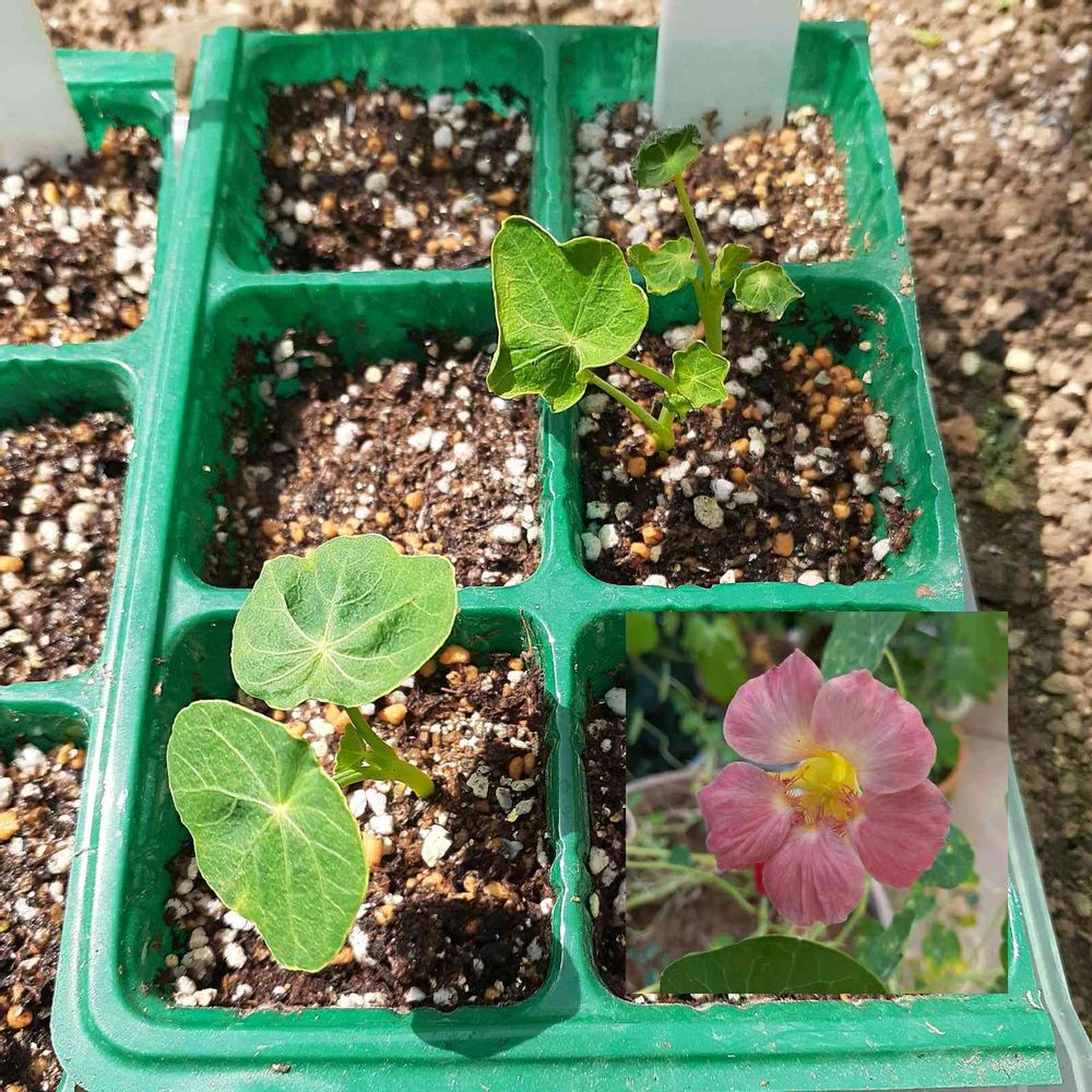 種から育てて3代目ですが種類が分からなくなった3個だけ発芽し葉っぱが少し大きくなってきました。花の写真は昨年ですが、今年はどんな花が咲くのやら。