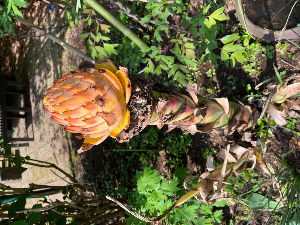 近くのお寺さんで、牡丹を見ていたら巨大な植物を発見!60センチ位の背丈です。コレはいったい何でしょう?お教え下さい。