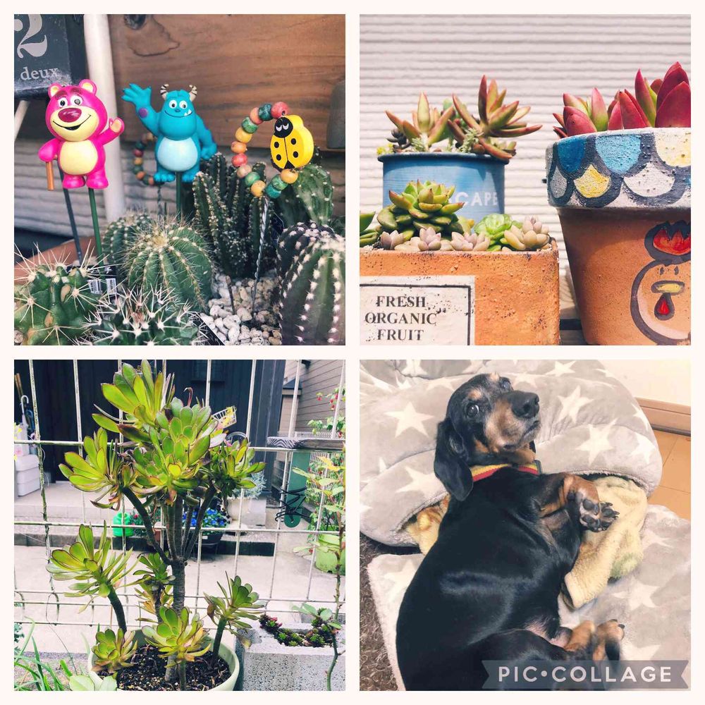 2021/2にGSスタートしました(*´`) 気ままな多肉ライフです☺️ 2022/7にミンネで販売スタートしました🍀 ミンネの中でニワトリ鉢で検索すると出てきますので良かったら覗いてください♡ https://minne.com/@sirokuma0625 多肉が大好きです❤️ 今年、年中になった息子と遊びながら手作りしたり少ない多肉で奮闘迷走中、全くの素人なので笑ってください😂 多肉の地植えに興味があり失敗しながら日々観察して改良を重ねてます(o´ω`) 多肉の寄植えもハマってきました😆 葉挿しっ子を上手に育てられるようになりたいです🫣 2021/9/23から義母の🐶(スタンダードダックス11歳)を引き取りました😁 🐶を飼うのが初めてなのでこちらも奮闘迷走中です😆 元々🐈2匹飼ってて🐶も加わり家事育児雑用等々益々慌ただしい生活です😂 その中で多肉ちゃん達は癒しです❤️