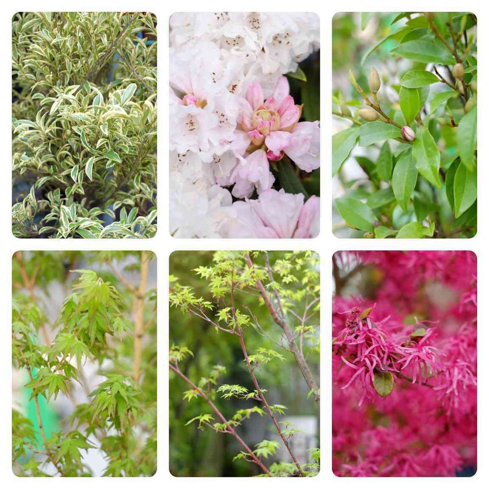今回は植木もご紹介です。斑入りサカキは常緑樹なので、一年中明るい葉色がお楽しみいただけます。絢爛豪華なシャクナゲ。お庭が明るくなりますね(^^)美峰は幹の色が黄色からオレンジに、葉も春は黄緑色、夏は緑色、秋には黄色に紅葉します。サンゴカクは、葉は黄緑色から秋には幹と同じ紅色に紅葉します。どちらのモミジも木全体の変化が楽しめますね(^o^)