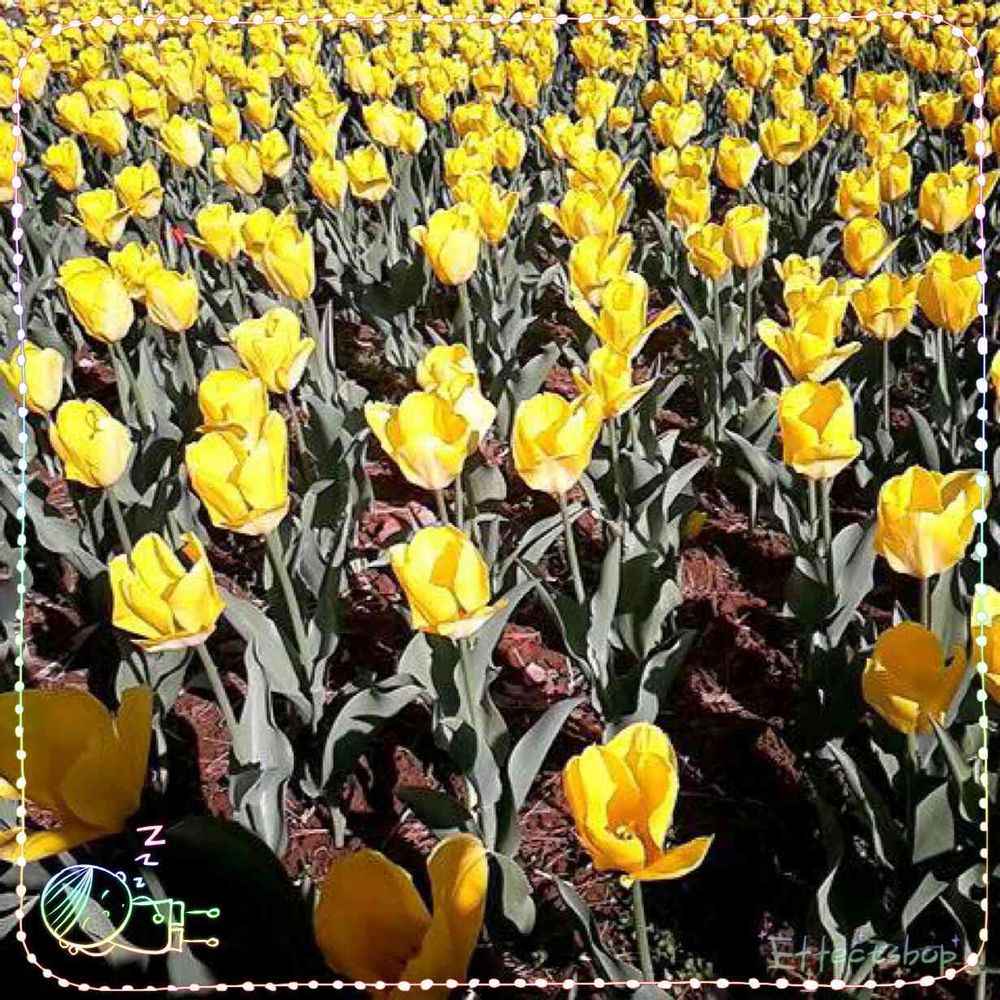 一面の黄色いチューリップも💛可愛いなぁー💕