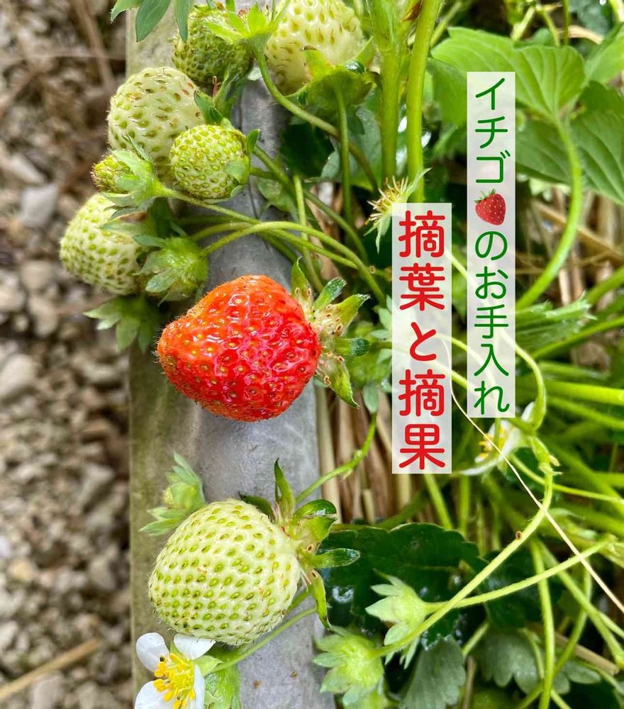 息子のイチゴなので、手伝ってもらいます😊初なりイチゴは息子が美味しそうに食べていました😋