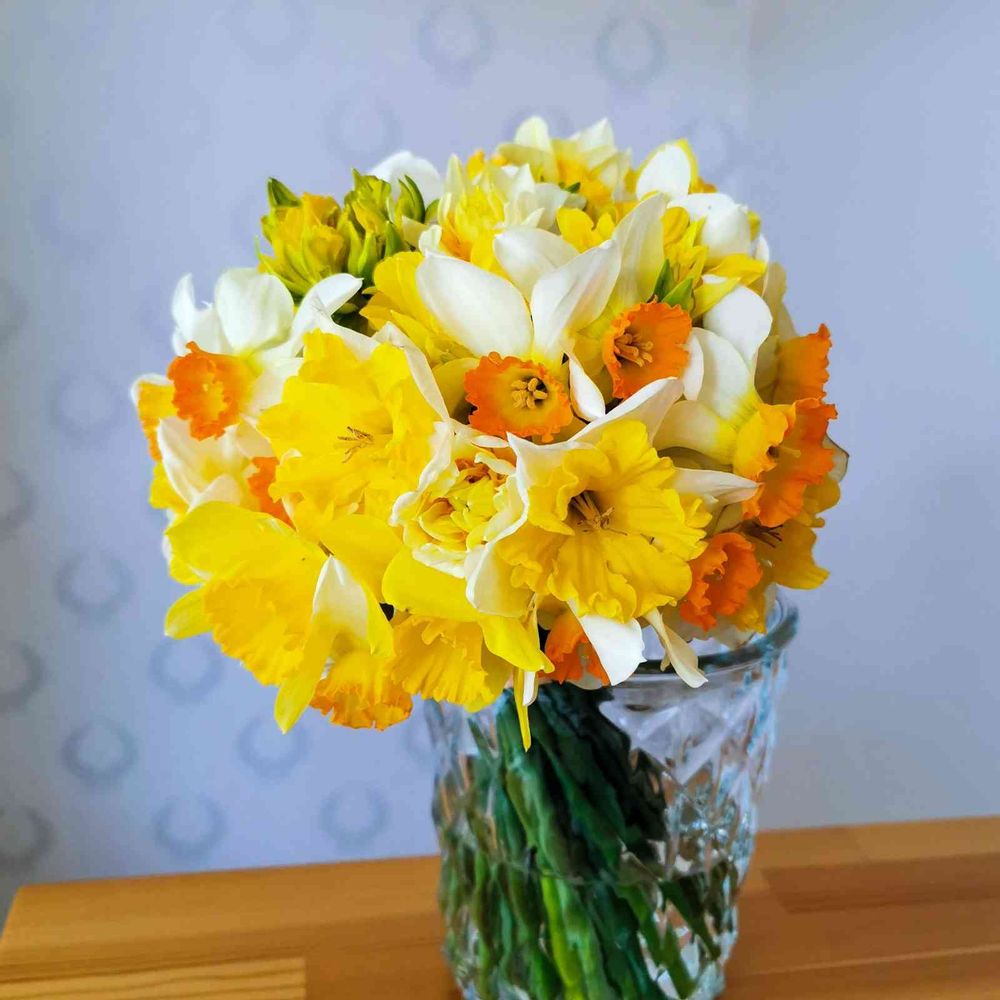 実家の水仙でブーケ束ねました𖡼.𖤣𖥧𖡼.𖤣𖥧⚘