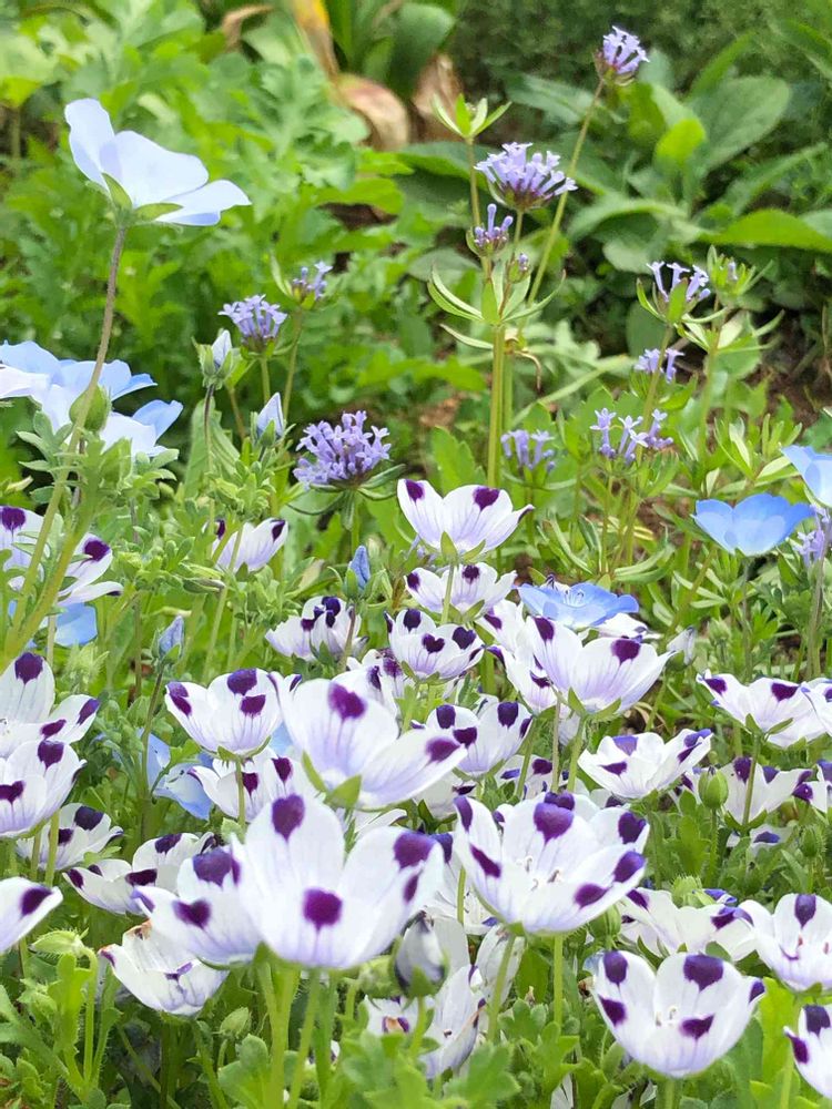 素敵なネモフィラさ〜ん…マキュラータと言うの?可愛いね!!🤍💟🤍💟💜🤗🎶…