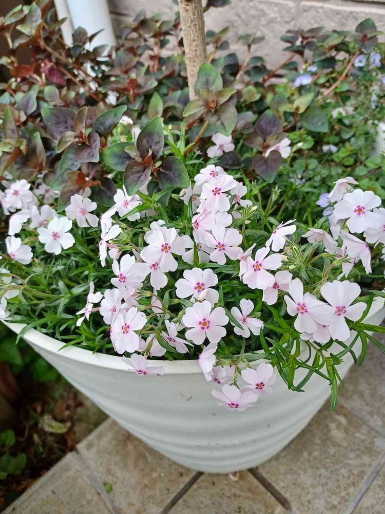 玄関前の庭🌿 ハーブ あじさい ミニ薔薇🌹 大好き😆💕 よろしくお願いします❤️ スマホを新しく🎵 データが更新です🍀
