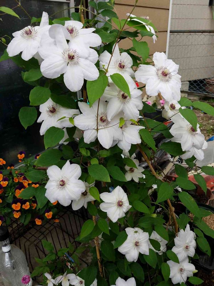 続々とクレマチスが開花していますね✨花付きがどれも素晴らしいですね❗️