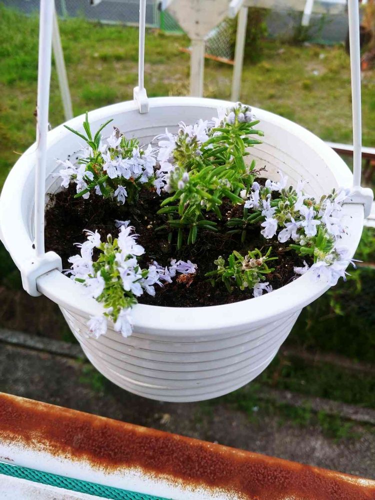 とローズマリーは立性(上へ育つ)と匍匐(ホフク 地面に這う)の2種類あってpicは匍匐タイプでハンギングにして育てたかったので頂いた刺し穂を無駄にしたくなかったからルートンを使いました。