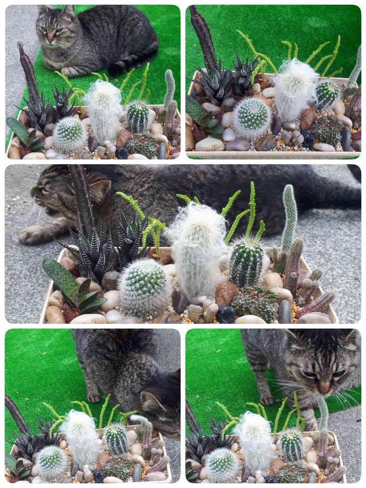 タマちゃん、サボちゃんの寄せ植えお気に入りですか❓😻