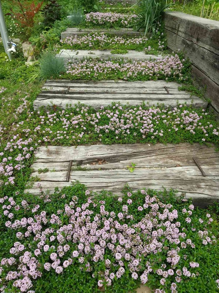 クリーピングタイム👀初めて見るお花です❤️優しい色で可愛らしい💕植え込み方も素敵❣️🎶きっと香りも素晴らしいんでしょうね(◔‿◔)🌱🌱🌱( ◜‿◝ )♡