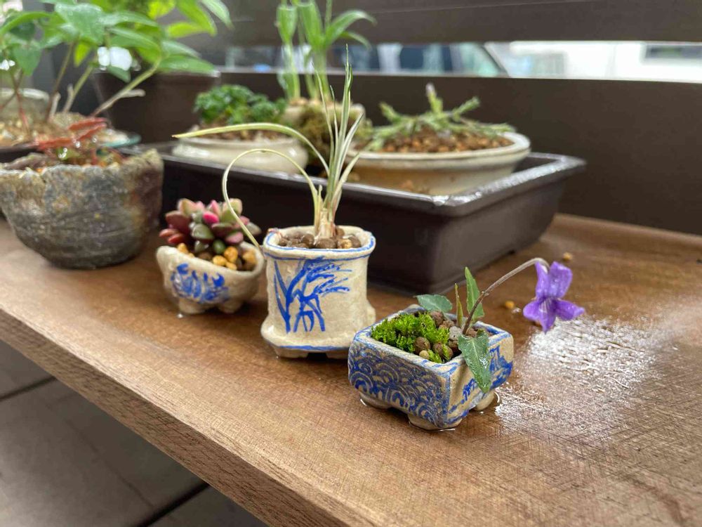 最近、山野草を始めました。旦那は盆栽、私は下草を学び始めました。 自宅で陶芸しています、豆鉢など作っています。の