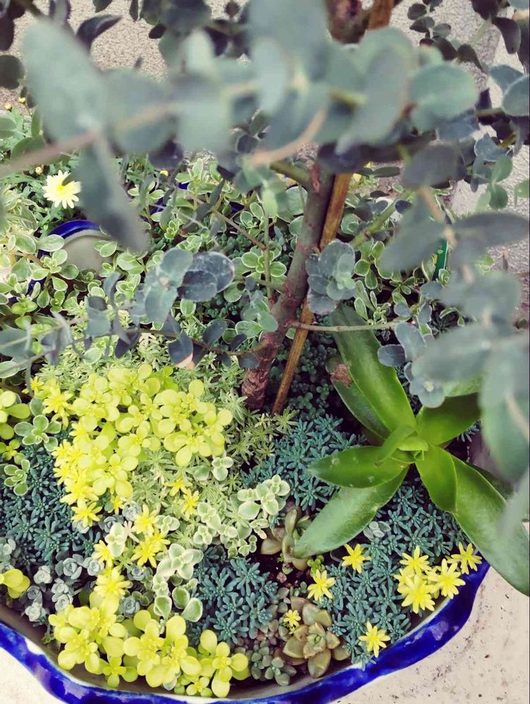 ユーカリグニーの株元にセダムをちょこちょこ置いてからあっという間にモリモリに😍