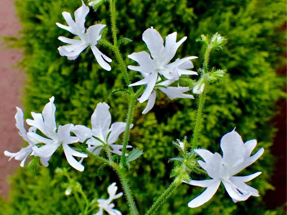 シザンサス(コチョウソウ)・シザンサス属・原産地 南米チリ・花色 白・赤・淡紅・紫・☘️切れ込みのある、純白で美しい花を咲かせていました。