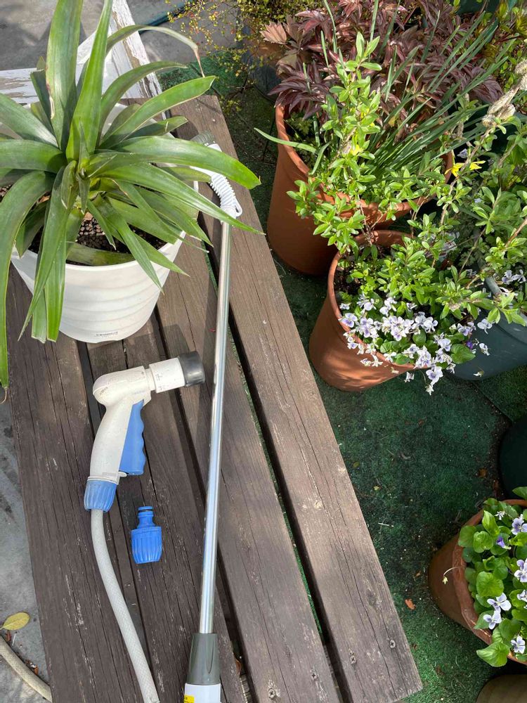 これで腰を曲げて奥の鉢にお水をあげる苦痛から解放されると‥